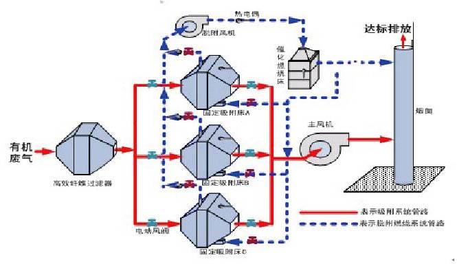 設備原理: 在催化劑的作用下,有機廢氣在較低的起燃溫度下(250~400℃),發(fā)生無焰燃燒,碳氫化合物被氧化分解為CO2和H2O,同時放出大量熱能,從而達到去除廢氣中的有機物的目的,該方法是凈化有機廢氣、消除惡臭的有效手段之一。 含VOCs的廢氣經(jīng)風機導入換熱器,經(jīng)由換熱器加熱后,再通過催化燃燒器,這時廢氣已被加熱至催化分解溫度,通過催化劑床,催化分解會釋放熱能,而VOCs被分解為二氧化碳及水。經(jīng)凈化后氣體溫度升高,再次進入換熱器與未經(jīng)處理的VOC廢氣進行熱交換,以此減少能源的消耗。后,凈化后的氣體從煙囪達標排放到大氣中。 催化劑:優(yōu)選貴金屬催化劑(Pt、Pd和Au),具有起燃溫度低(280℃起燃),去除效率高(>95%),具有較高催化活性,同時還耐高溫、抗氧化、耐腐蝕。催化劑改變化學反應速度而本身又不參與反應,反應前后基本沒有消耗,使用壽命長。 廢氣預處理:為了避免催化劑床層的堵塞和催化劑中毒,廢氣在進入床層之前必須進行預處理,以除去廢氣中的粉塵、液滴及催化劑的毒物。 預熱裝置:催化劑都有一個適宜的催化活性溫度,對催化燃燒來說稱為催化劑起燃溫度,必須使廢氣和床層的溫度達到起燃溫度才能進行催化燃燒。對于排出的廢氣本身溫度就較高的場合,如漆包線、絕緣材料、烤漆等烘干排氣,溫度可達300℃以上,則不必設置預熱裝置。